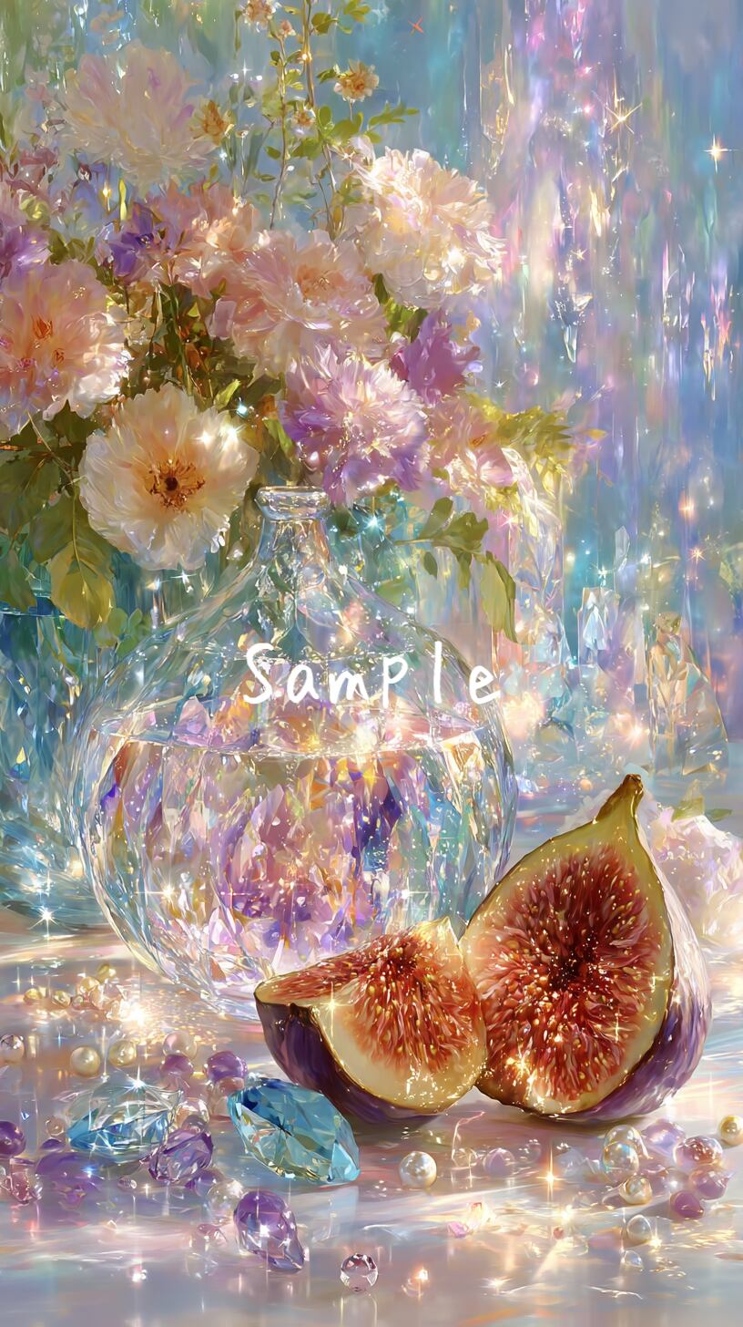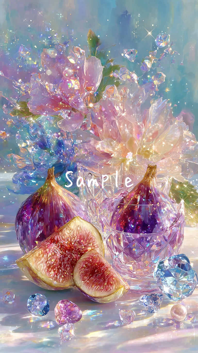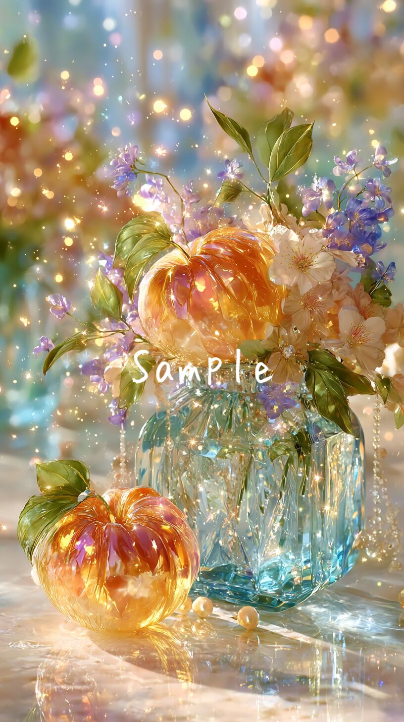 美しいガラスのフルーツと花と宝石をテーマにした特別なスマホ壁紙8点セットです。