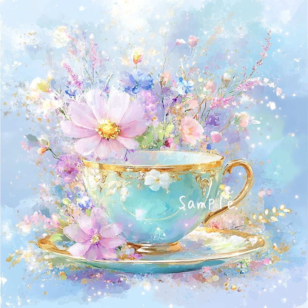 優雅なティーカップに咲く美しい花々と舞う蝶が織りなす繊細で華やかなアイコンです。